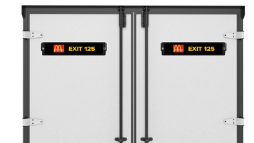 To minimize driver distractions each ad is restricted to a logo and exit number only and remains static with no movement for 30 seconds before the next ad drops down onto the screen. Each ad is static 98.5% of the time.